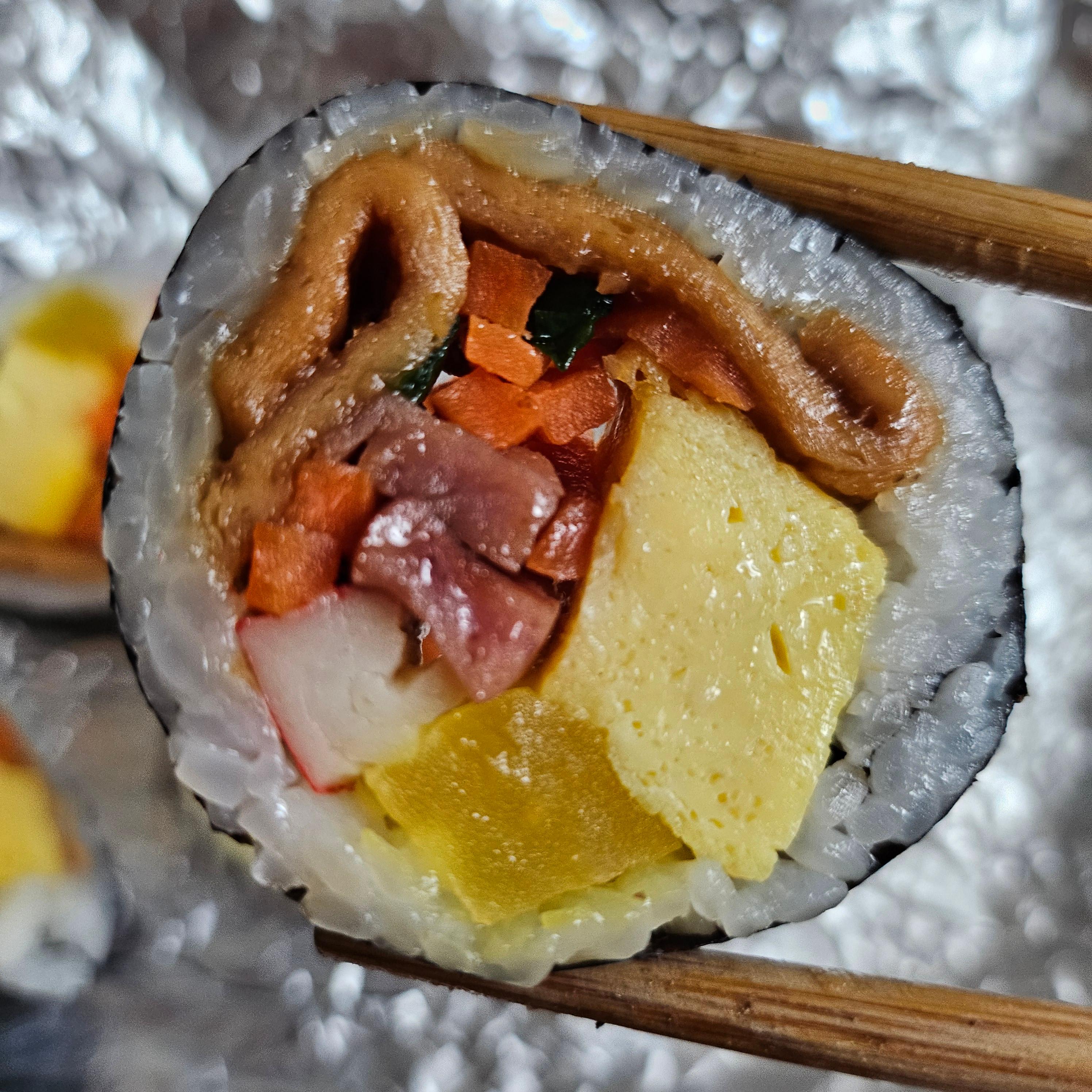 어묵, 당근, 시금치, 햄, 맛살, 단무지, 계란