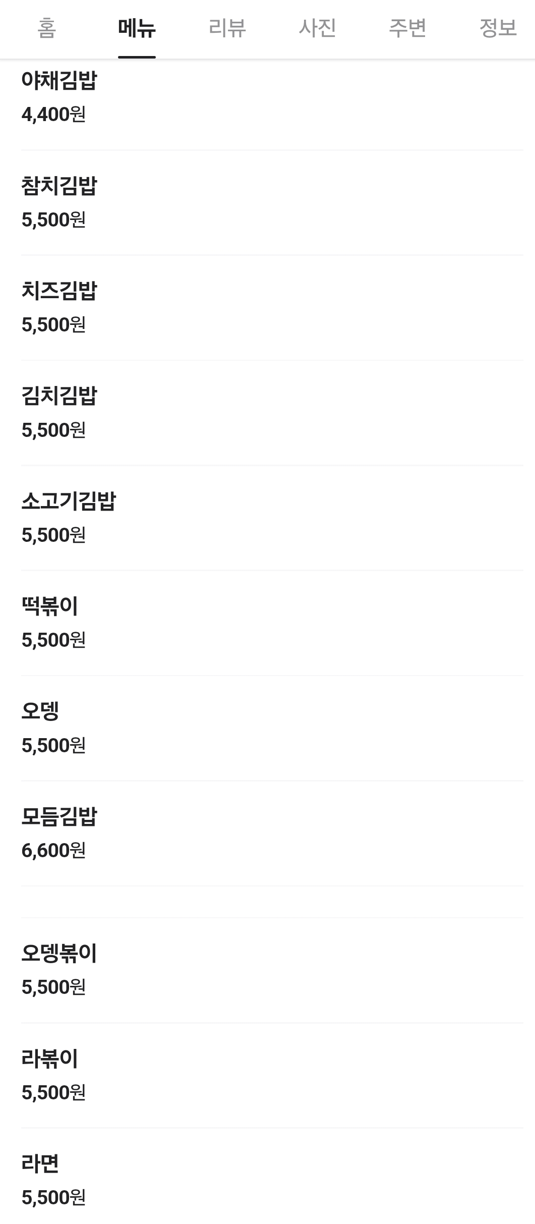 줄줄이 김밥 메뉴는 꽤 심플해요!