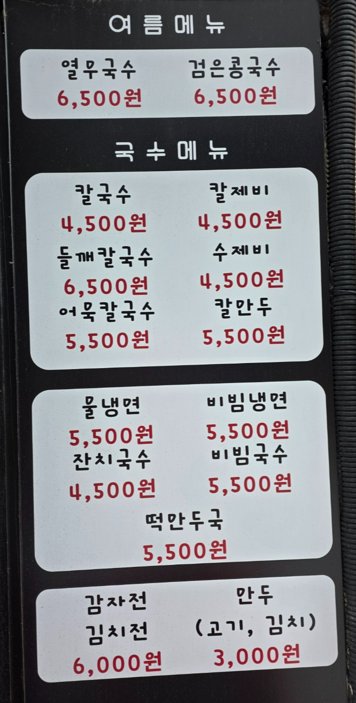 메뉴판 밑에 보시면 칼제비는 바쁜 점심시간대에는 주문 불가지만,
