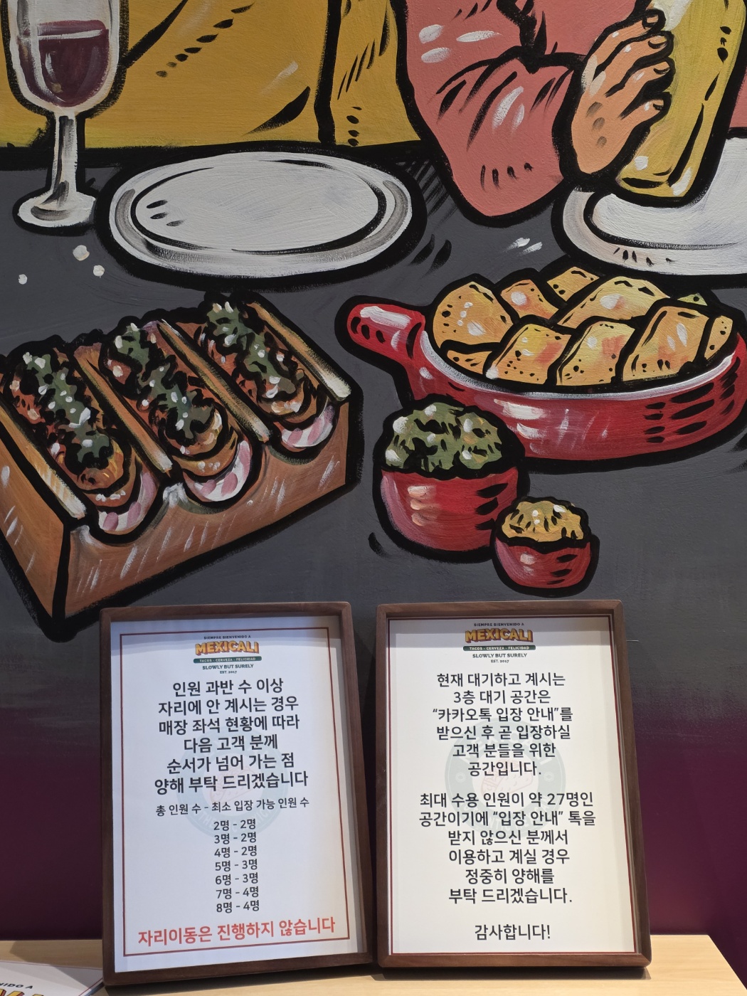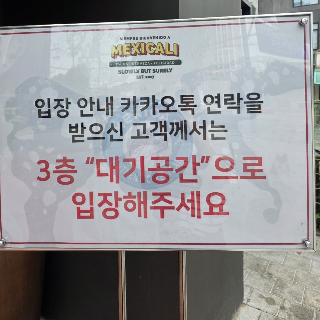 멕시칼리 정문 앞에 웨이팅 태블릿이 있어요.