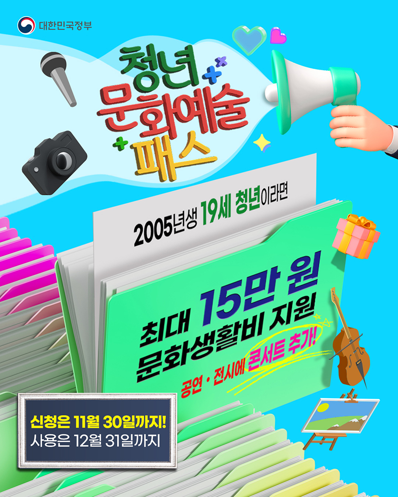 청년문화예술 패스는 만 19세(2006년생) 청년에게 최대 15만원 규모의 문화포인트를 제공해