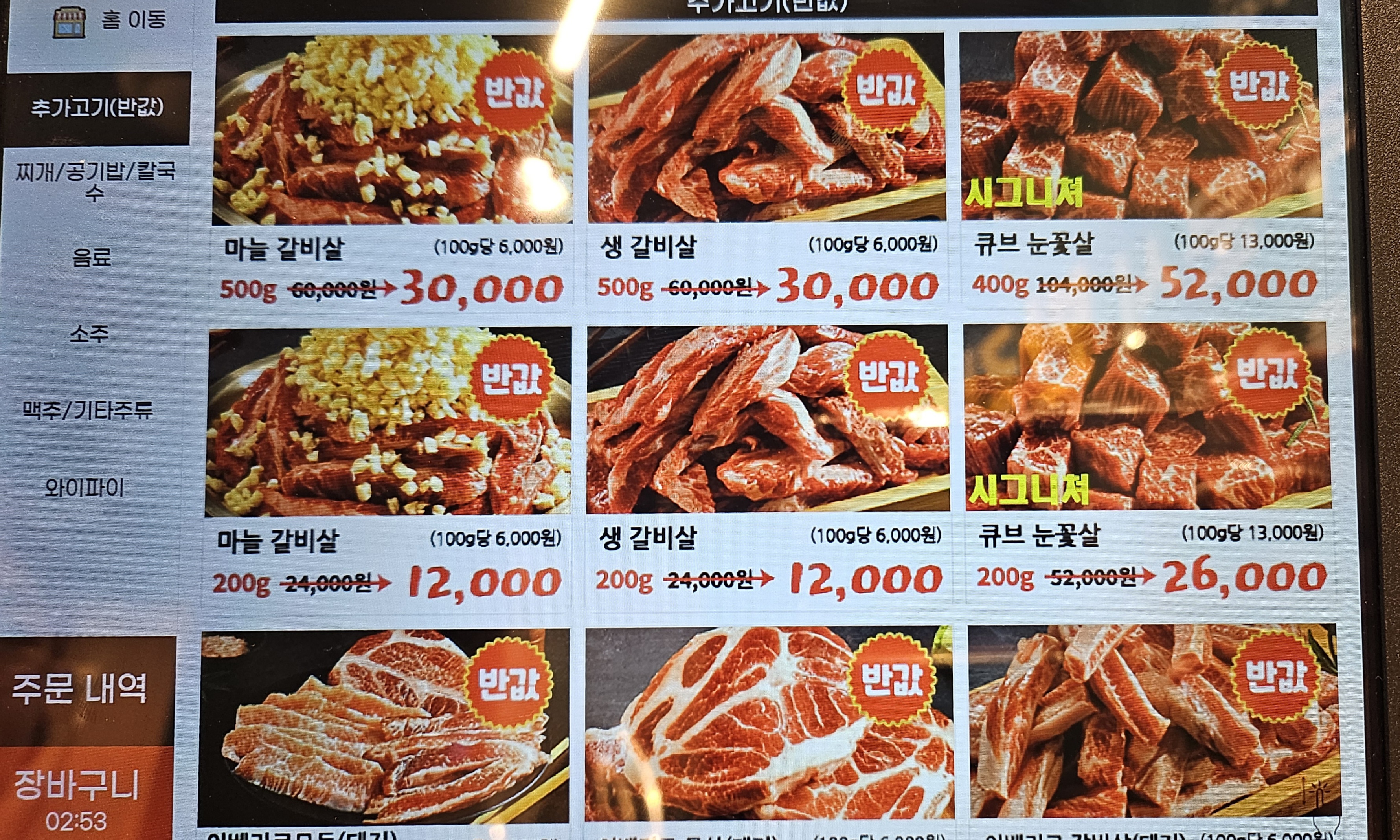 메뉴판에는 큐브 눈꽃살 같은 다른 프리미엄 메뉴도 있어서