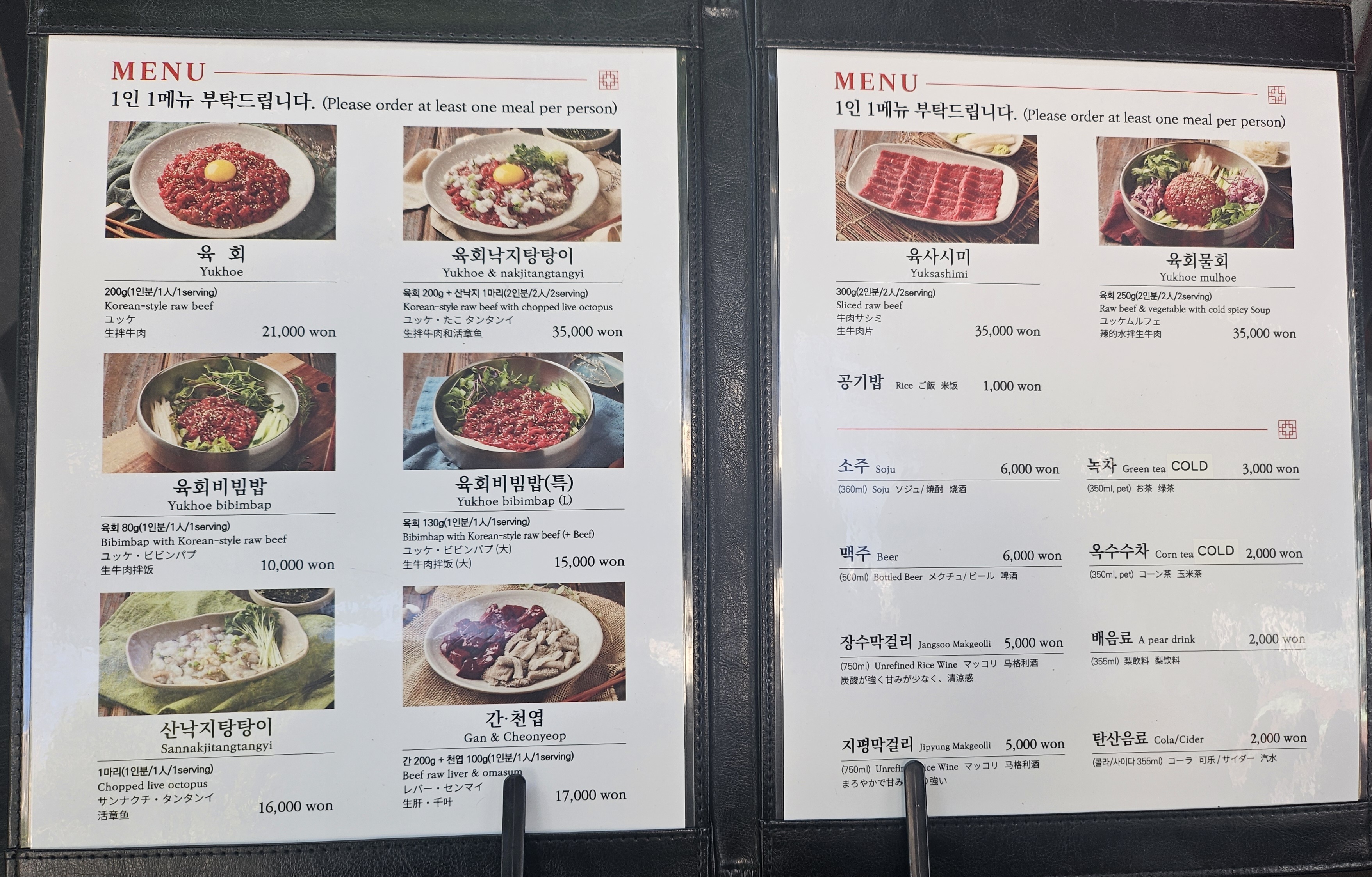 저는 육회, 육회비빔밥, 산낙지탕탕이를 주문했어요.