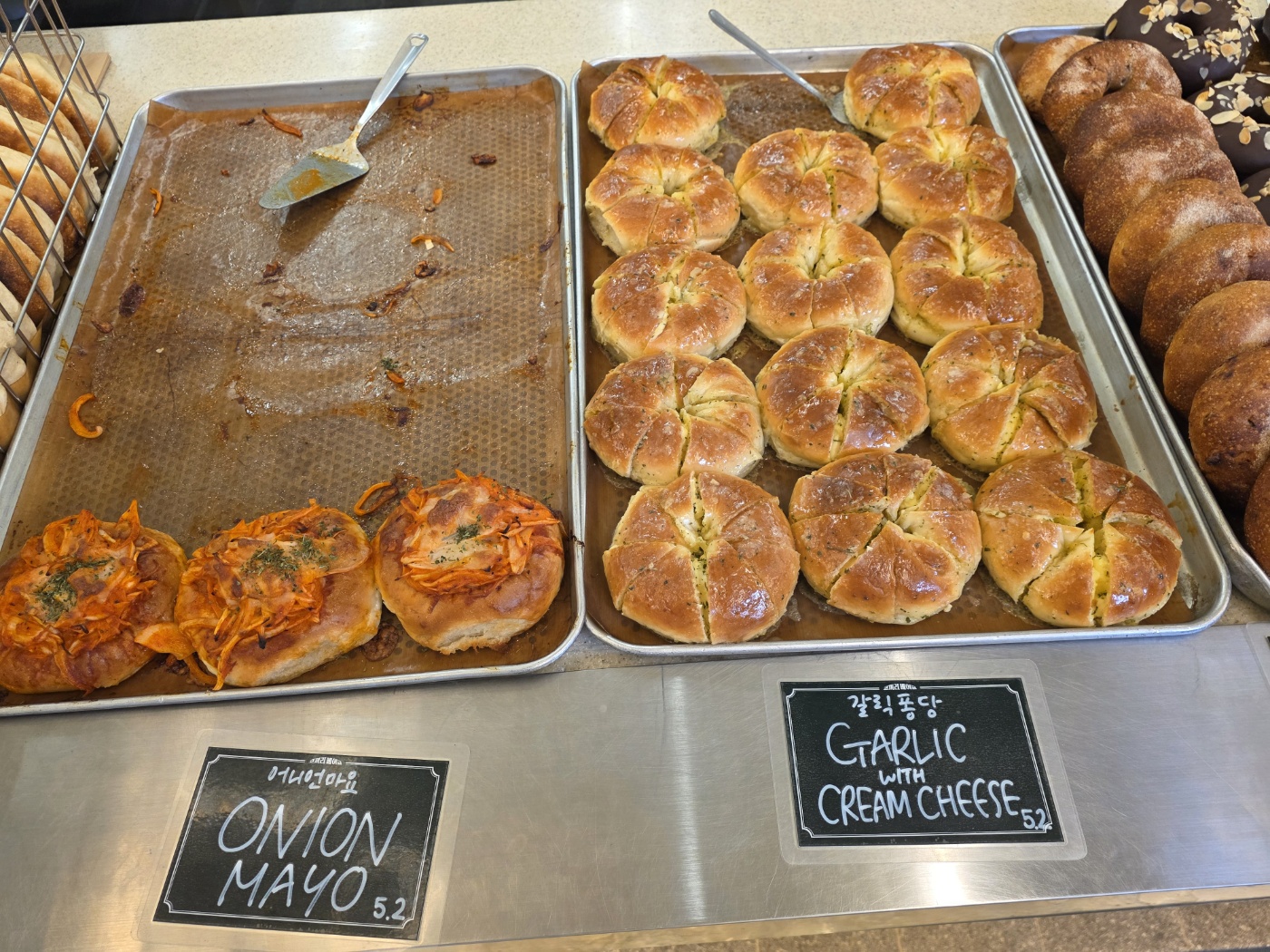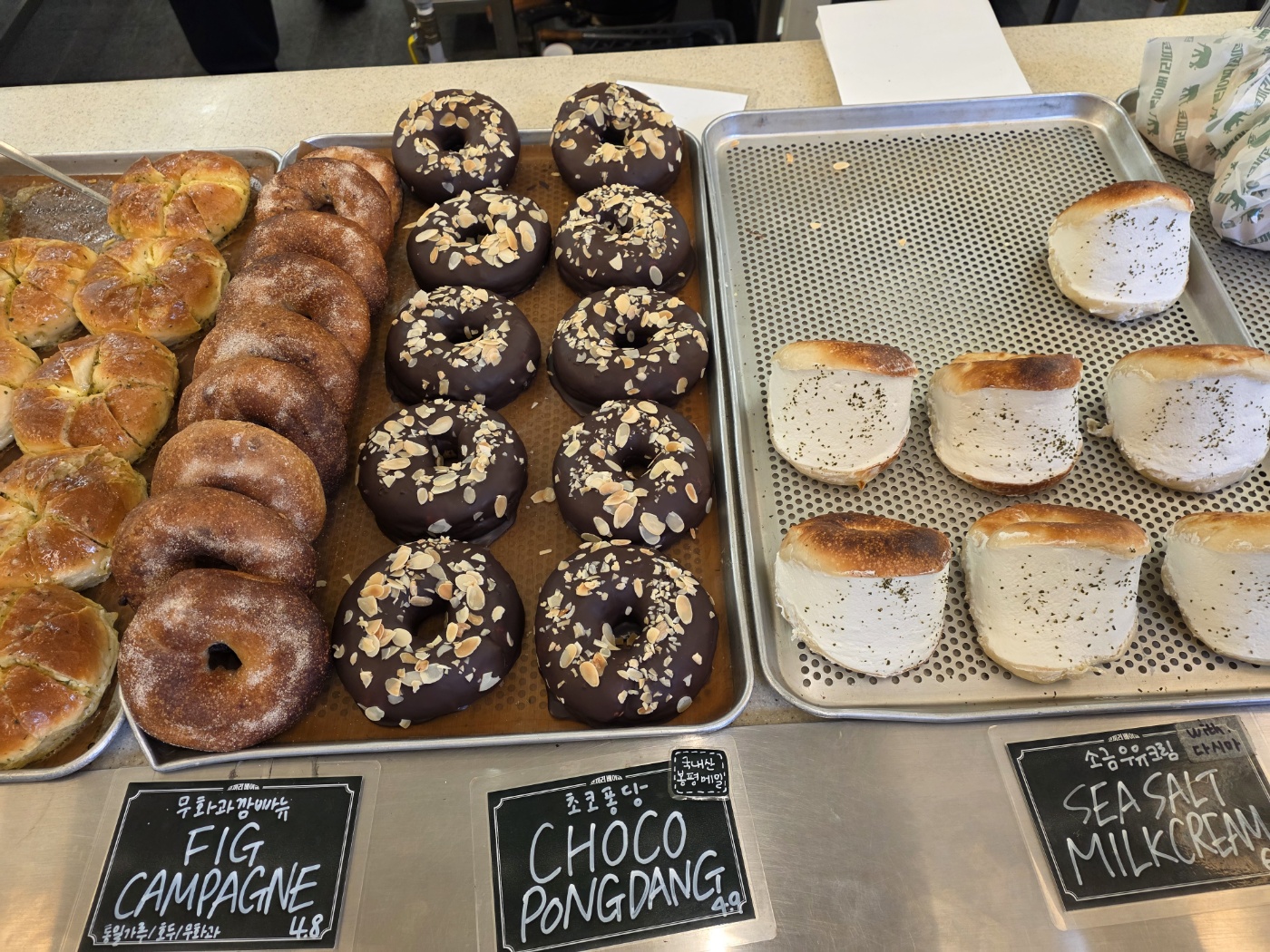 제가 방문했을 때는 주말 오후 1시쯤이었는데, 여러 종류의 베이글들이 있어요.