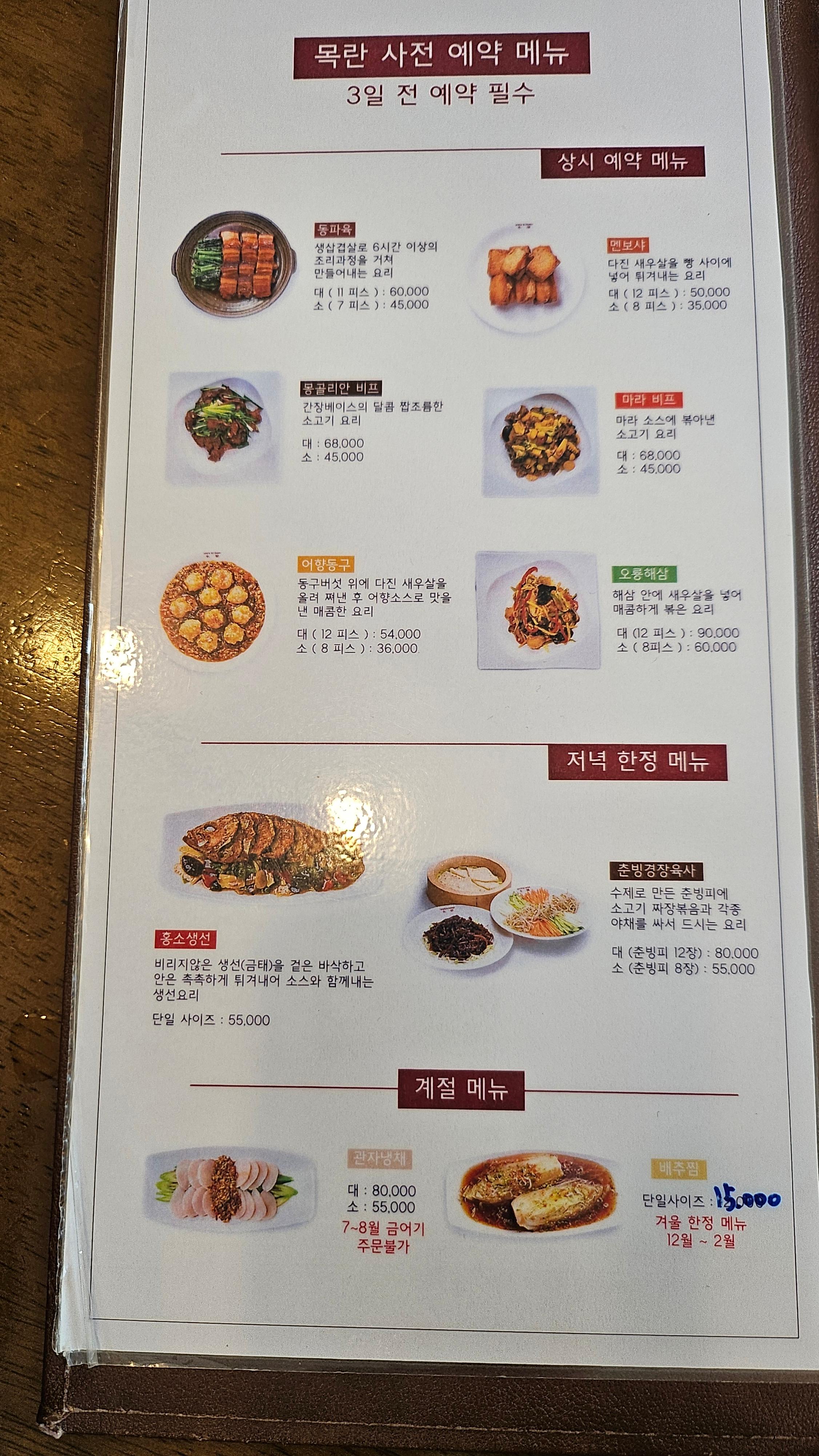 목란은 워낙 인기가 많아서 예약이 필수예요.