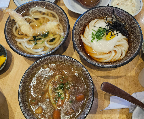 삼미 우동은 야마카케 우동, 덴뿌라 우동, 카레 우동