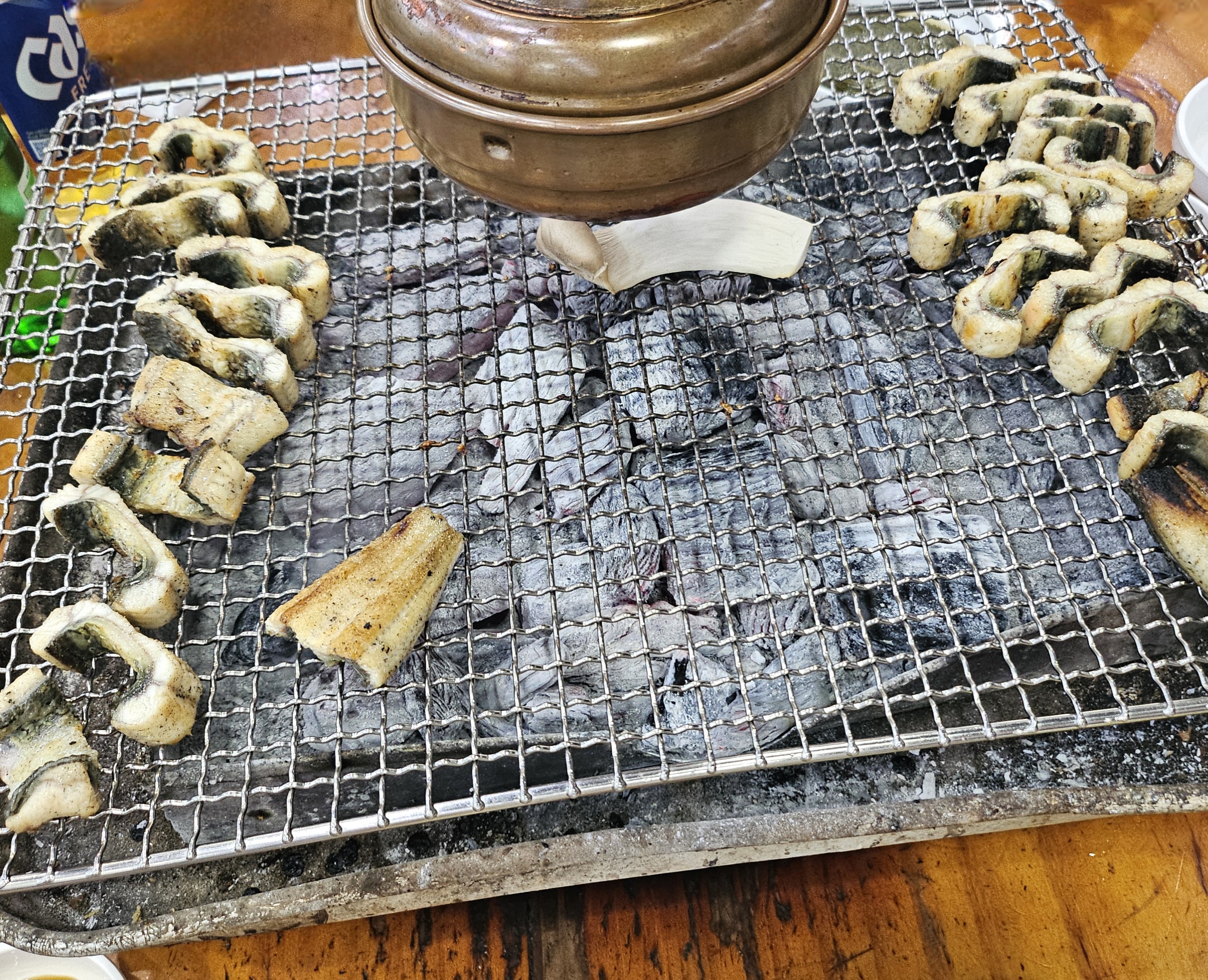 강쇠 한판은 직접 구워져 나오는 메뉴로 소금구이 두 마리예요!