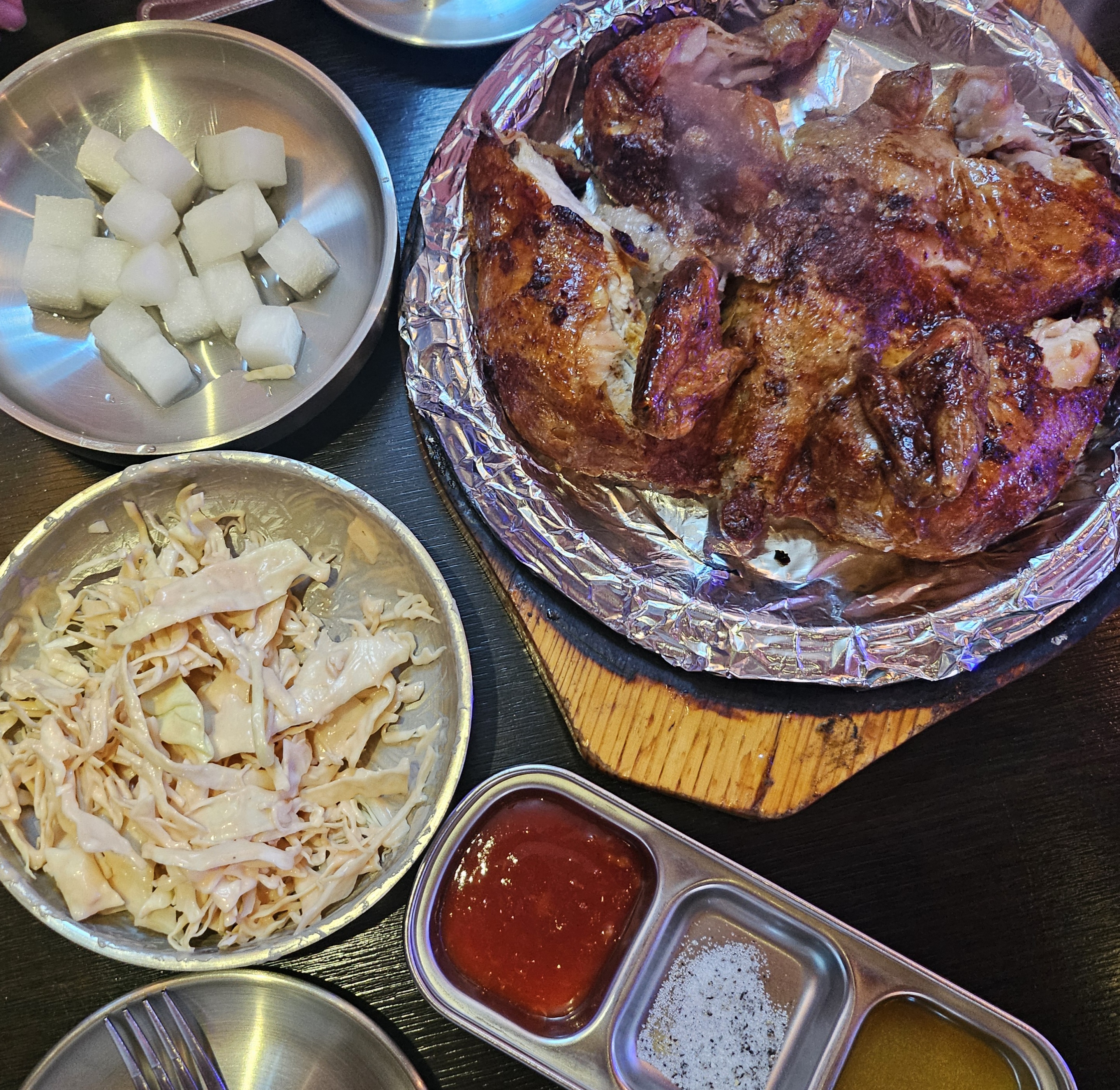 참나무로 구운 닭을 먹었어요!!!